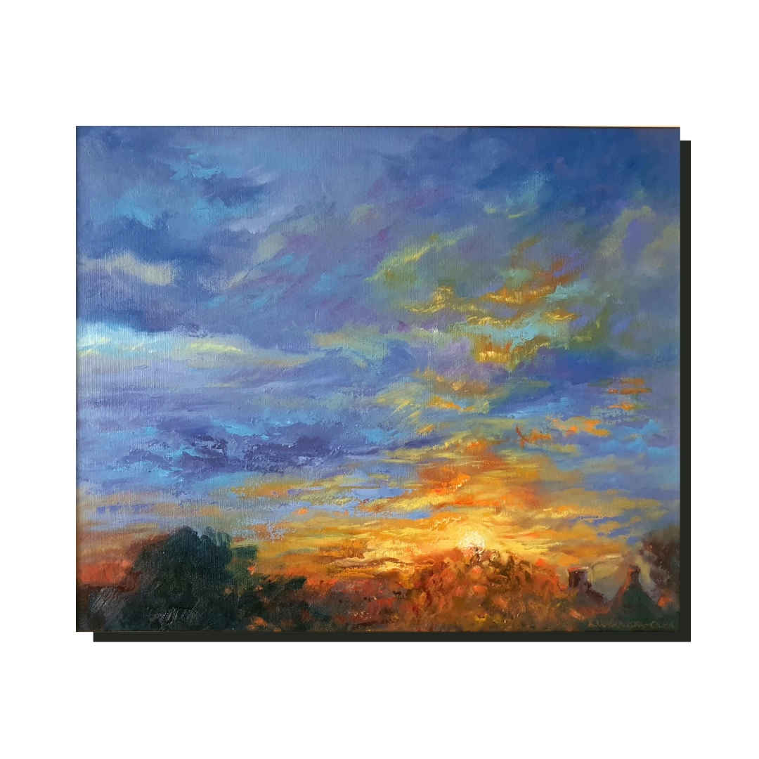 I am honoured to present to you my new collection of the sky-scapes. “From sunrise to sunset” is a collection of oil paintings, painted on canvases, where I explore light and colours of the sky and relationship between them.